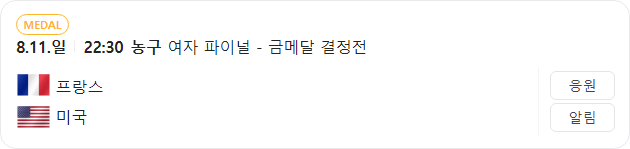 | 8월 11일 올림픽 남자 농구 프랑스 VS 미국 타카짱 경기 예측 분석 (0) | 2024.08.10 |