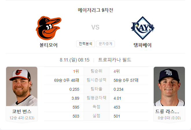 탬파베이는 여전히 와일드 카드 자리를 노리고 있지만, 리그 하위권의 공격력을 극복하지 못한다면 어려운 싸움이 될 것입니다. 상대적으로 타격이 약한 탬파베이는 볼티모어의 강력한 투수진과 불펜을 상대로 고전할 가능성이 큽니다.