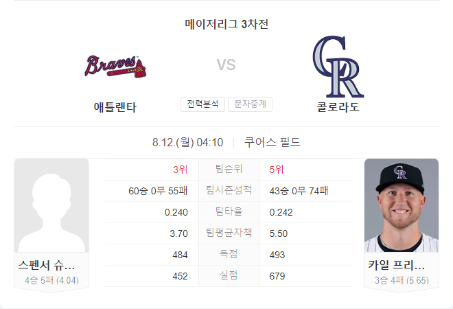 이번 경기는 애틀랜타 브레이브스의 투수력과 타선이 중요한 변수가 될 것입니다. 스펜서 슈웰렌바흐의 최근 성적을 고려했을 때, 브레이브스가 콜로라도 로키스를 상대로 우위를 점할 가능성이 큽니다.