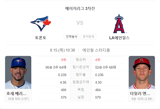 토론토 블루제이스와 LA 에인절스의 이번 맞대결은 양 팀 모두에게 중요하지만, 현재의 경기력과 선발 투수의 상태를 고려할 때 토론토 블루제이스가 약간의 우위를 점할 것으로 보입니다.