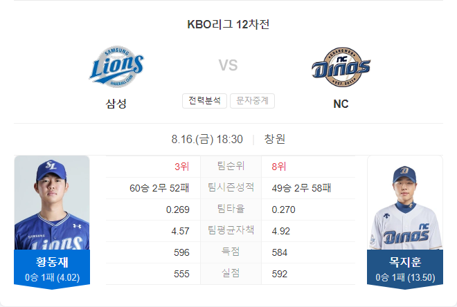 | 8월 15일 KBO 크보 KT 위즈 VS 삼성 라이온즈 타카짱 경기 예측 분석 (0) | 2024.08.15 |