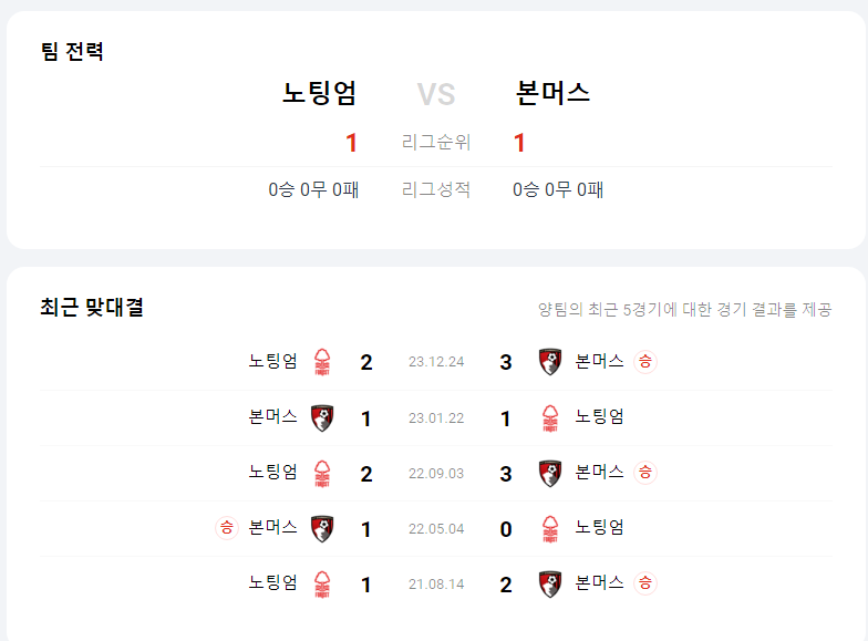8월 17일 프리미어리그 노팅엄 VS 본머스 타카짱 경기 예측 분석