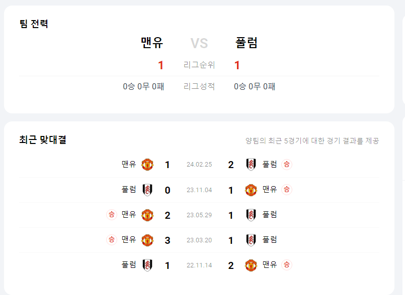8월 17일 프리미어리그 맨유 VS 풀럼 타카짱 경기 예측 분석