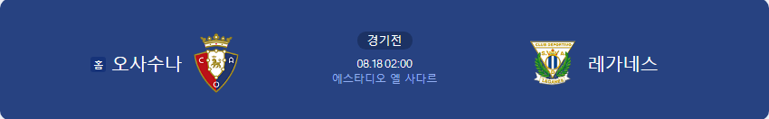 8월 18일 라리가 오사수나 VS 레가네스 타카짱 경기 예측 분석