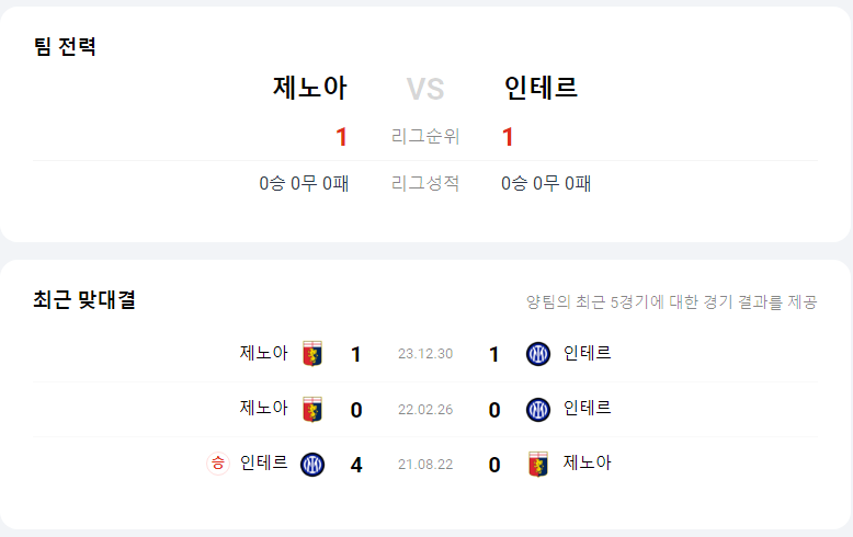 이번 경기는 인터밀란이 유리한 경기로 보입니다. 제노아는 홈에서 강한 모습을 보였지만, 인터밀란의 강력한 수비와 공격력을 상대하기에는 다소 역부족일 것입니다.