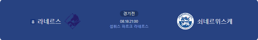 8월 18일 수페르리가 라네르스 VS 쇠네르위스케 타카짱 경기 예측 분석