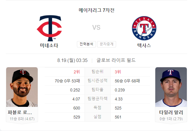 미네소타 트윈스는 이번 시즌 와일드카드 경쟁에서 중요한 위치를 차지하고 있으며, 플레이오프 진출을 위해 매 경기가 중요한 상황입니다. 이번 시리즈에서 텍사스 레인저스를 상대로 연승을 이어가며 강력한 모습을 보이고 있습니다. 특히, 파블로 로페즈가 이번 경기에 선발로 나서며 팀의 마운드를 책임질 예정입니다.