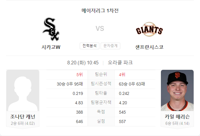 샌프란시스코 자이언츠는 해리슨의 야간 경기 강점과 불펜의 안정적인 모습을 바탕으로 승리를 노리고 있습니다. 반면, 시카고 화이트삭스는 캐넌의 제구 문제와 타선의 좌완 투수 상대 약점을 극복하지 못할 경우, 어려운 경기를 치를 가능성이 큽니다.