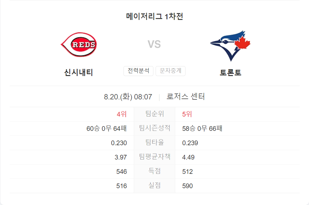 이번 경기는 토론토 블루제이스가 유리한 상황입니다. 가즈먼의 우수한 투구와 안정적인 불펜이 승리의 열쇠가 될 것으로 보입니다. 반면, 신시내티 레즈는 어과이의 데뷔전과 타선의 부진을 극복해야 하는 어려운 과제를 안고 있습니다.