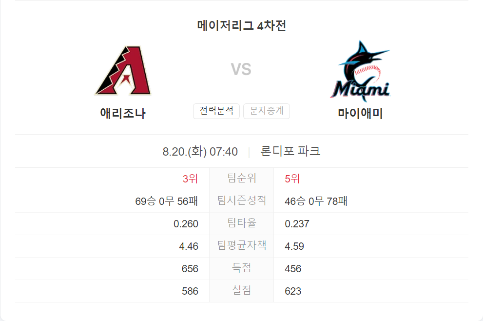 이 경기는 선발 투수와 타선의 활약이 승부를 가를 중요한 요소가 될 것입니다. 애리조나는 브랜든 파트의 안정적인 투구와 타선의 강세를 바탕으로 승리를 기대할 수 있으며, 마이애미는 불펜의 안정성에 의존할 가능성이 큽니다.