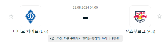 8월 22일 챔피언스리그 디나모 키예프 VS 잘츠부르크 타카짱 경기 예측 분석