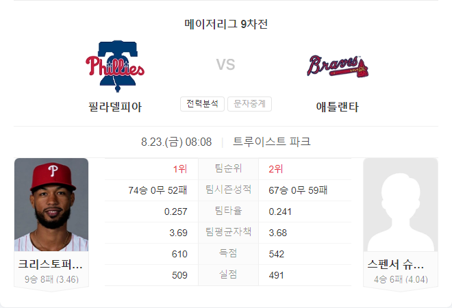 | 8월 23일 메이저리그 MLB 샌디에이고 파드리스 VS 뉴욕 메츠 타카짱 경기 예측 분석 (0) | 2024.08.22 |