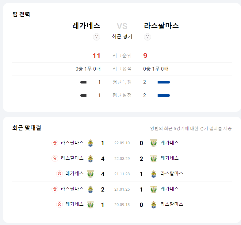 이번 경기는 저득점 양상에서 레가네스가 신승을 거두거나 무승부가 나올 가능성이 큽니다. 레가네스가 중원에서 강한 압박을 통해 라스팔마스의 느린 템포의 플레이를 저격할 것으로 보입니다. 레가네스의 적극적인 플레이가 경기의 흐름을 결정짓는 중요한 요소가 될 것입니다.