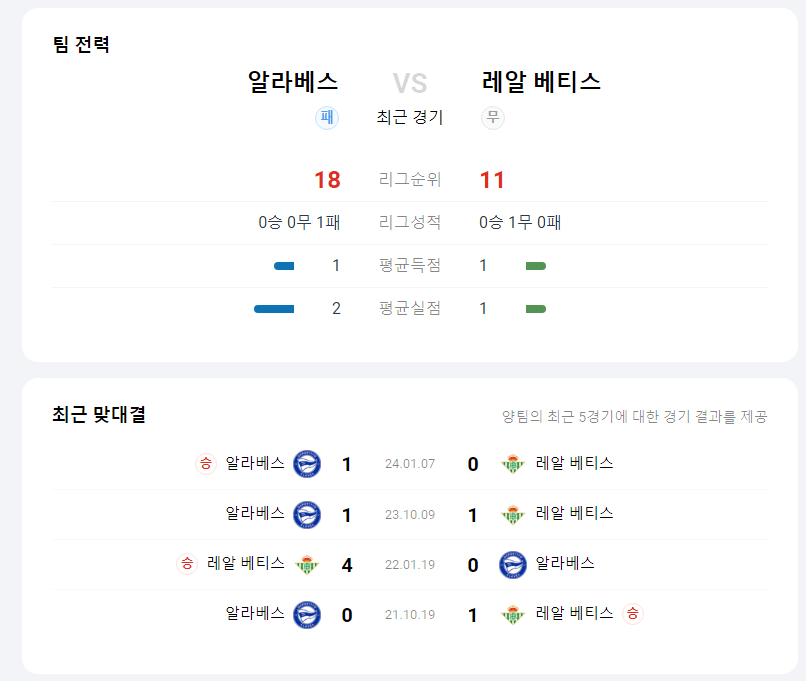 8월 26일 라리가 알라베스 VS 레알 베티스 타카짱 경기 예측 분석