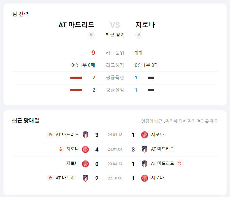 8월 26일 라리가 AT 마드리드 VS 지로나 타카짱 경기 예측 분석
