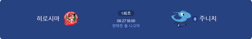 8월 27일 일본야구 히로시마 도요 카프 VS 주니치 드래곤즈 타카짱 경기 예측 분석