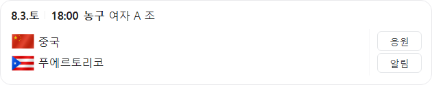 | 8월 4일 올림픽 남자 농구 푸에르토리코 VS 미국 타카짱의 경기 예측 분석 (0) | 2024.08.03 |