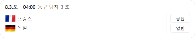 | 8월 3일 올림픽 남자 농구 중국 VS 푸에르토리코 타카짱의 경기 예측 분석 (0) | 2024.08.03 |