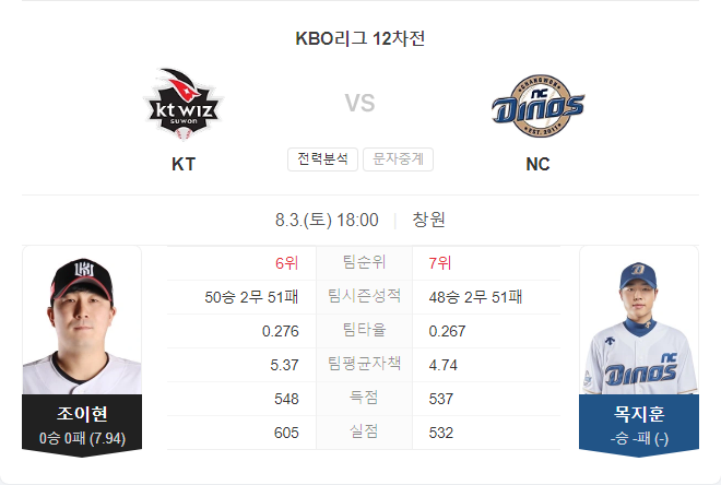 | 8월 3일 KBO 프로야구 키움 히어로즈 VS 두산 베어스 타카짱의 경기 예측 분석 (0) | 2024.08.03 |