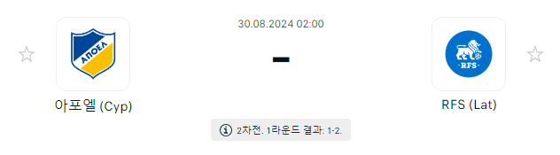 RFS는 지난 1차전에서 아포엘을 상대로 2-1로 승리하며 유리한 고지를 점령했습니다. 이번 경기에서는 무승부만으로도 다음 라운드로 진출할 수 있는 이점을 살려, 안정적인 수비와 루즈한 경기 운영을 통해 경기를 관리할 것으로 예상됩니다. RFS는 주로 쓰리백 수비를 통해 상대의 공격을 효과적으로 차단할 계획이며, 경기 후반으로 갈수록 더 견고한 수비를 선보일 것입니다.