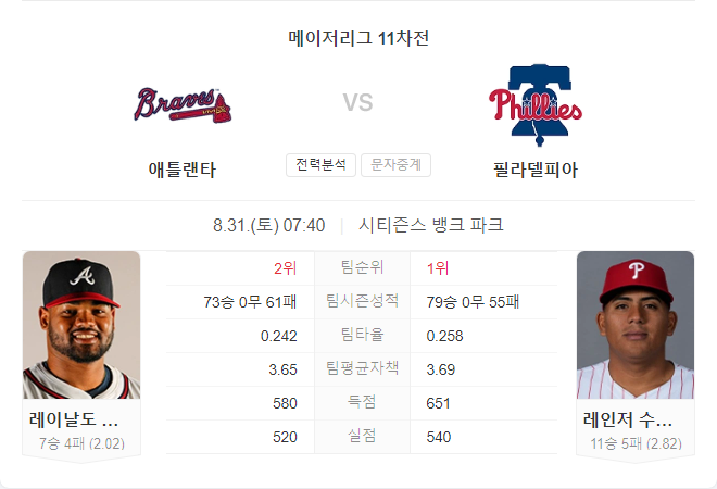 애틀랜타 브레이브스는 이번 시즌 레이날도 로페즈를 중심으로 안정적인 선발진을 자랑하고 있습니다. 로페즈는 이번 시즌 7승을 기록하며 꾸준한 성적을 이어가고 있으며, 특히 필라델피아와의 이전 경기에서도 좋은 투구를 선보였습니다. 그러나 최근 경기에서 불펜의 난조로 인해 승리를 놓치는 일이 잦아졌습니다. 타선 역시 득점권에서의 부진이 문제로 지적되고 있습니다.