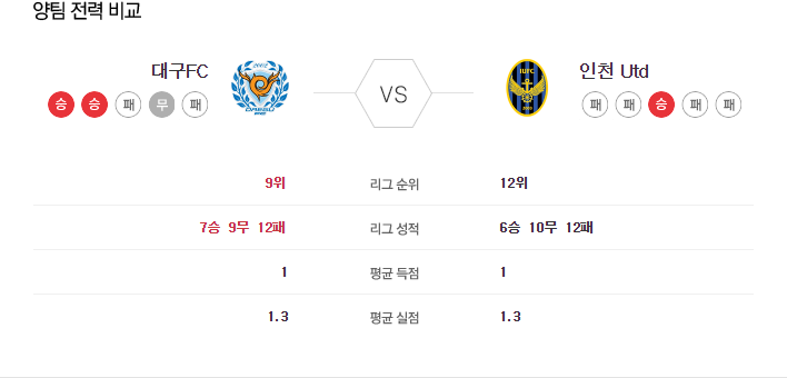 대구 FC는 3백 기반의 전술이 안정화되어 있으며, 세징야의 컨디션 회복과 측면 침투가 팀 공격력을 크게 향상시키고 있습니다. 반면, 인천 유나이티드는 포백 전술로 전환했으나 수비의 안정성에 문제를 겪고 있습니다. 대구의 강력한 공격력에 비해 인천의 수비가 효과적으로 대응하기 어려울 것으로 보이며, 대구의 승리가 유력해 보입니다.
