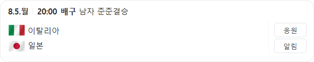 | 8월 6일 올림픽 남자 배구 프랑스 VS 독일 타카짱의 경기 예측 분석 (0) | 2024.08.05 |