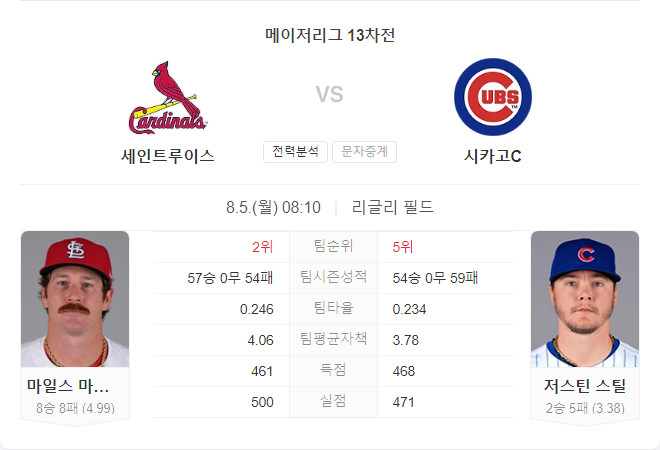 | 8월 6일 MLB 뉴욕 메츠 VS 세인트루이스 카디널스 타카짱의 경기 예측 분석 (0) | 2024.08.05 |