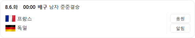 | 8월 6일 올림픽 남자 배구 미국 VS 브라질 타카짱의 경기 예측 분석 (0) | 2024.08.05 |