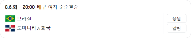 8월 6일 올림픽 여자 배구 브라질 VS 도미니카공화국 타카짱의 경기 예측 분석