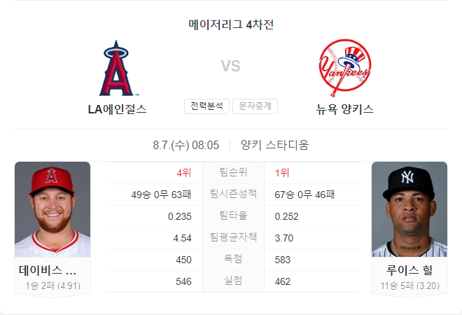뉴욕 양키스는 홈에서 강한 모습을 보이며, 특히 루이스 길이 선발 등판할 때 안정적인 투구를 보여주고 있다. 에인절스는 원정 경기에서 타격 성적이 저조하며, 이번 경기도 어렵게 풀릴 가능성이 높다. 양키스는 최근 상승세를 타고 있으며, 강력한 타선을 바탕으로 에인절스의 투수진을 공략할 것으로 보인다.