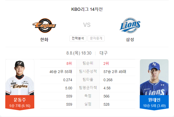 | 8월 11일 KBO 크보 삼성 VS 기아 타카짱 경기 예측 분석 (0) | 2024.08.11 |