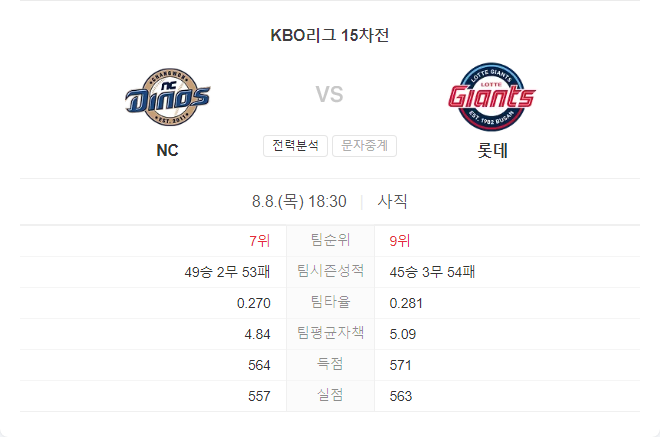 | 8월 8일 KBO 프로야구 SSG 랜더스 VS 키움 히어로즈 타카짱의 경기 예측 분석 (0) | 2024.08.08 |