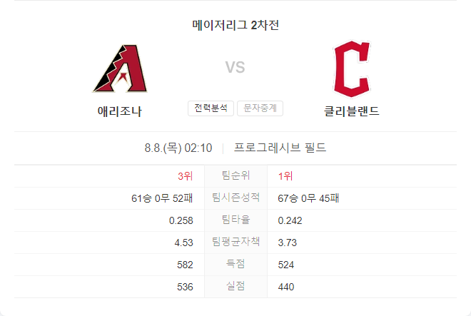이번 경기에서는 클리블랜드 가디언스가 홈에서의 강세를 이어갈 가능성이 높습니다. 애리조나의 파프트가 최근 경기에서 다소 부진한 모습을 보였고, 클리블랜드의 라이블리는 안정적인 피칭을 이어가고 있습니다. 양 팀 모두 최근 공격력이 좋은 모습을 보이고 있어 이번 경기에서 많은 득점이 예상됩니다. 전체적으로 클리블랜드가 우세할 것으로 보이며, 경기 총점은 8.5점을 넘길 가능성이 큽니다.