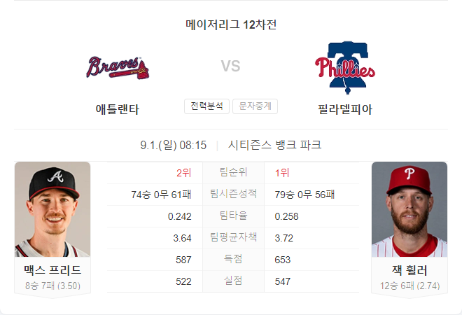 애틀랜타 브레이브스는 현재 74승 61패를 기록하며 내셔널 리그 와일드카드 1위를 지키고 있습니다. 이번 경기에서 선발 투수 맥스 프리드가 시즌 9승을 목표로 하고 있습니다. 프리드는 최근 원정 경기에서 기복을 보였지만, 필라델피아 전에서는 좋은 성적을 내었습니다. 시즌 평균 자책점 3.60으로 안정적인 투구를 보이며, 상대 타자들에게 약한 타격을 허용하고 있습니다. 브레이브스의 타선은 홈런을 중심으로 강력한 공격력을 보이고 있으며, 불펜도 상대적으로 안정된 모습을 보이고 있습니다.