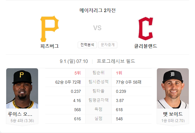9월 1일 메이저리그 MLB 보스턴 레드삭스 VS 디트로이트 타이거즈 타카짱 경기 예측 분석 (0) | 2024.09.01 |