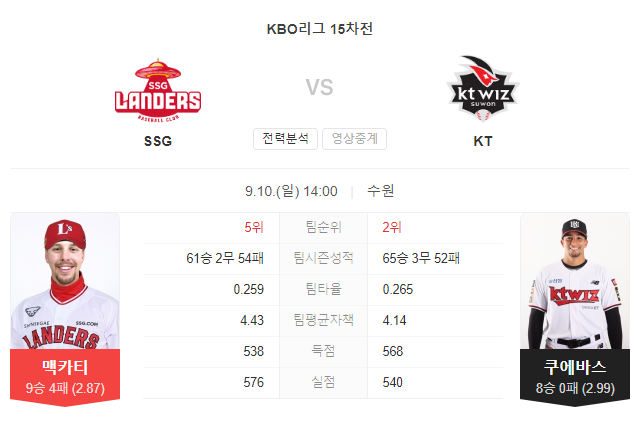 KT 위즈는 홈에서의 경기에서 강력한 투구와 타선을 보이고 있습니다. 투수 쿠에바스는 홈에서의 강점을 가지고 있으며, 특히 LG 상대에서 뛰어난 성적을 기록하고 있습니다. KT 위즈의 타선은 경기 내내 득점을 올리는 능력을 갖고 있으며, SSG 랜더스의 선발 투수를 압박할 가능성이 큽니다. KT 위즈는 홈에서의 이점을 살려 이번 경기에서 승리할 가능성이 높습니다.