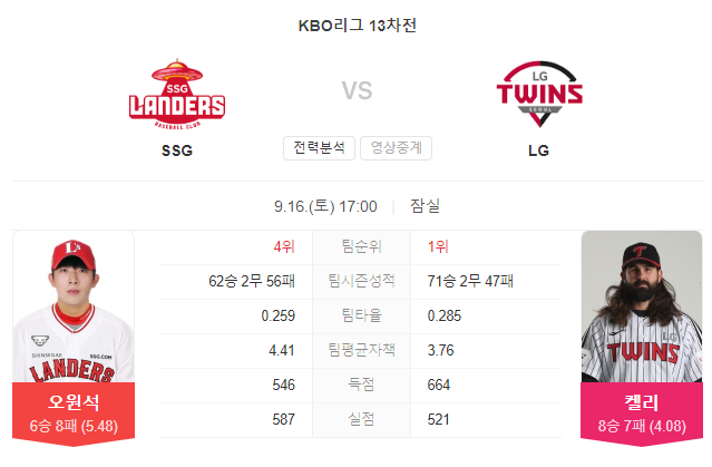 반면 SSG 랜더스는 투수 오원석의 부진으로 인해 어려움을 겪고 있습니다. 오원석은 8월 이후 5경기 연속 4실점 이상을 기록하며 팀을 위기에 빠뜨리고 있습니다. 또한 오원석은 금년 LG 상대에서 약한 모습을 보여 기대를 떨어뜨리고 있습니다.