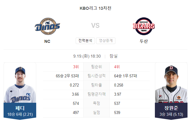 NC 다이노스는 에릭 페디(18승 6패 2.21)를 선발로 내세웁니다. 페디는 홈 경기에서 무적 모드를 펼치고 있으며, 원정에서 가끔 흔들리는 경기가 있었지만 이번 경기에서는 강력한 호투를 기대할 수 있습니다.