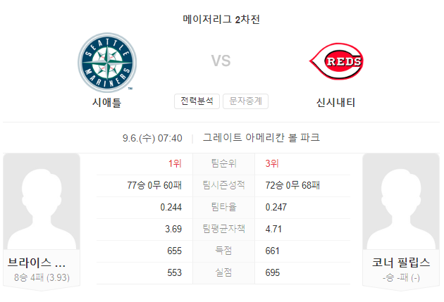 전날의 경기에서는 브라이언 우를 공략하면서 스펜서 스티어의 3점 홈런을 포함한 6점을 득점한 신시내티의 타선은 초반에 5점을 득점하여 승부를 갈랐습니다. 그러나 중후반의 부진은 반성할 부분이며, 시애틀의 공격을 3실점으로 막아낸 불펜은 위력을 보여주고 있습니다.